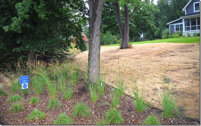 The next photo shows the meadow lawn area in the front yard. The city guidelines require that we kill off the existing lawn before creating the meadow. We carefully sprayed the area with herbicide two weeks ago and have effectively killed off everything growing there. Matt’s crew is scheduled to start working on the meadow in two weeks.